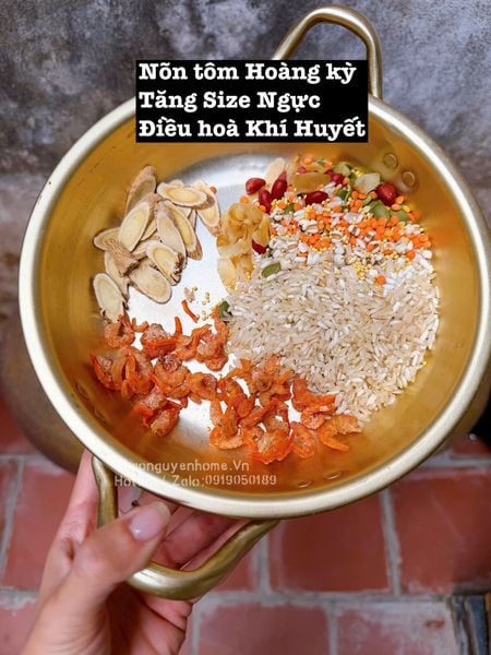 Nguyên liệu: Có tôm nõn tươi hay khô đều được 1 nhúm hoàng kỳ, đương quy, gạo tẻ. Hoặc ngon nhất có thể tham khảo set cháo 7 vị Thảo Nguyên Home
