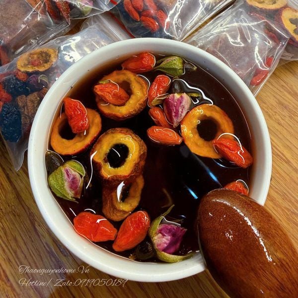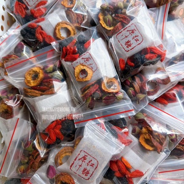 Thành phần có: Hoa hồng, Kỷ tử, Dâu tằm đen, Sơn tra, đường đỏ Vân nam