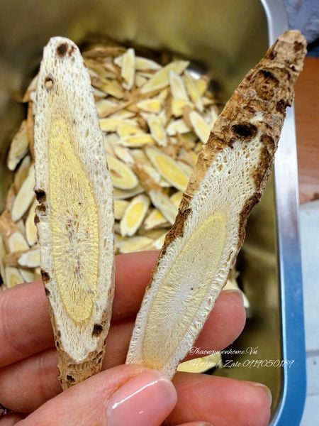 Hoàng kỳ Thiên nhiên thì vỏ nó sần sùi hơn, bên trong lõi vàng hơn, ở giữa có chút xốp như thế này. Cũng giống như sâm, càng lâu năm càng tốt, vân rõ ràng sắc nét hơn, vị nồng hơn