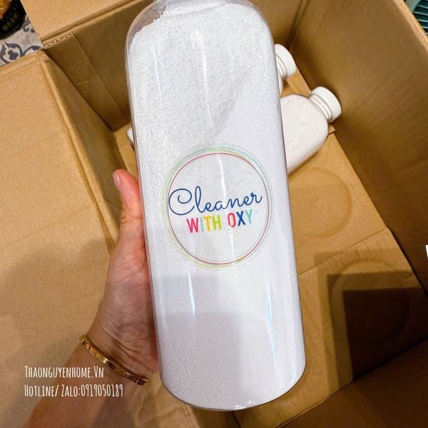 - Lấy 1- 2 thìa bột oxy này, thêm 1 chút nước giặt, rồi thêm nước ấm và ngâm đồ màu trắng 30 phút rồi bỏ vào máy giặt (hổng phải vò tay tẹo nào)