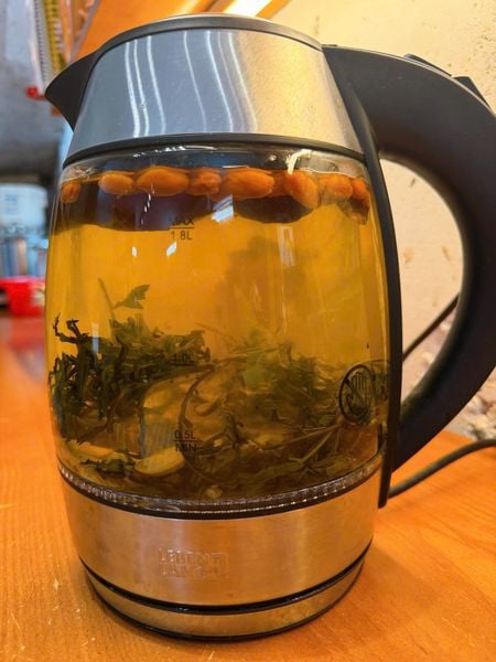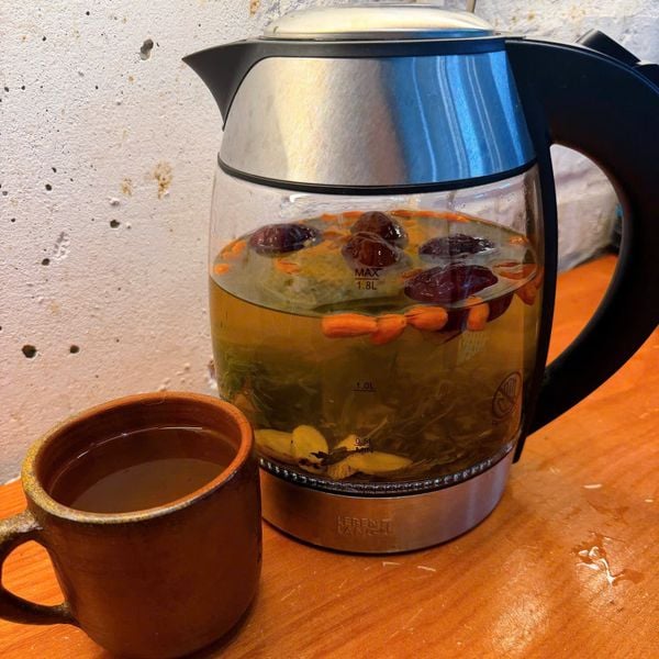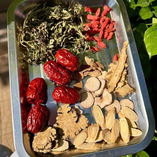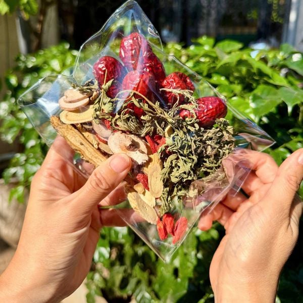 Các vị trong trà ôn ấm tử cung: ngải cứu, táo đỏ, kỷ tử, gừng, đương quy, xuyên khung, hoàng kỳ, bạch thược